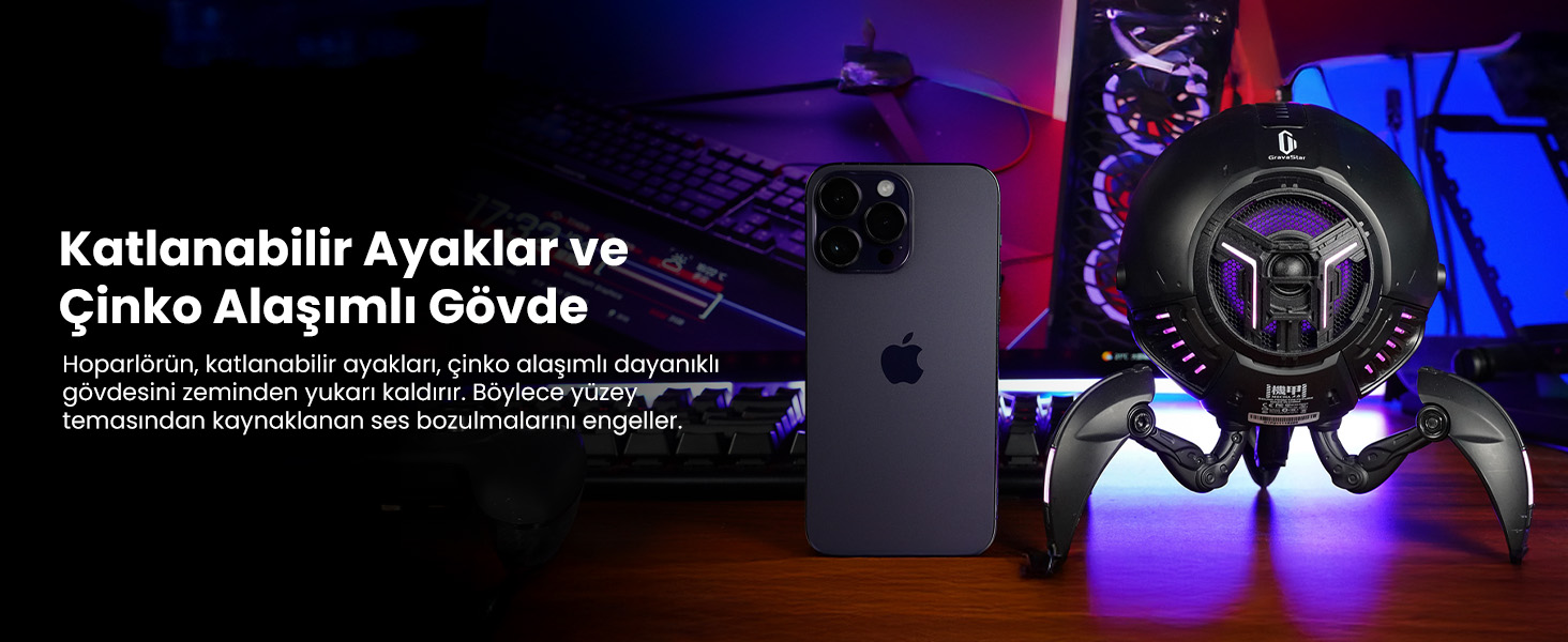 GravaStar Mars ProBluetooth Hoparlör, ses tutkunları için tasarlanmış sıradışı bir hoparlördür. Hoparlörün katlanabilir 3 ayağı sayesinde yüzey temasından kaynaklanan ses bozulmaları ortadan kalkar. Ayrıca Mars Pro’nun çinko alaşımlı gövdesi hoparlöre ekstra dayanıklılık katar. Bu setin içinde GravaStar Mars Pro Siyah Led Işıklı 20W Bluetooth Hoparlör ile birlikte