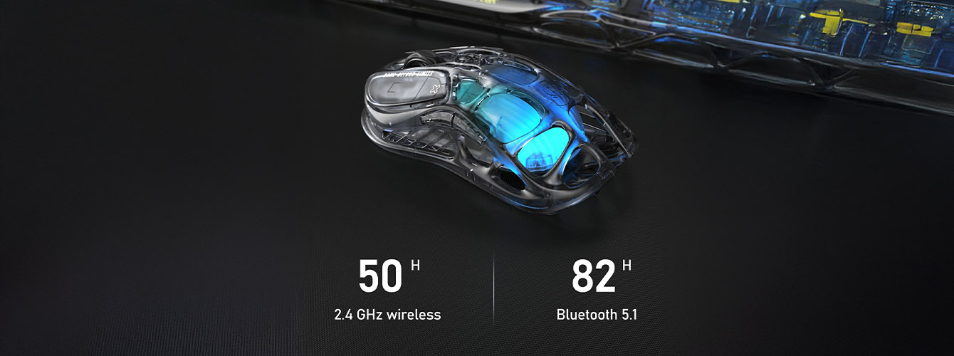 Gravastar gamer mouse yüksek hızlı 2,4 GHz kablosuz bağlantı ile RGB ışıkları açıkken tam dolu şarj ile ortalama 50 saate kadar kullanılabilir. Bu süreyi Bluetooth 5.3 bağlantısını kullanarak 82 saate kadar çıkarabilirsiniz. M2 mouse USB-C kablosu ile şarj edilir ve şarj ederken oyun oynamaya devam edebilirsiniz.