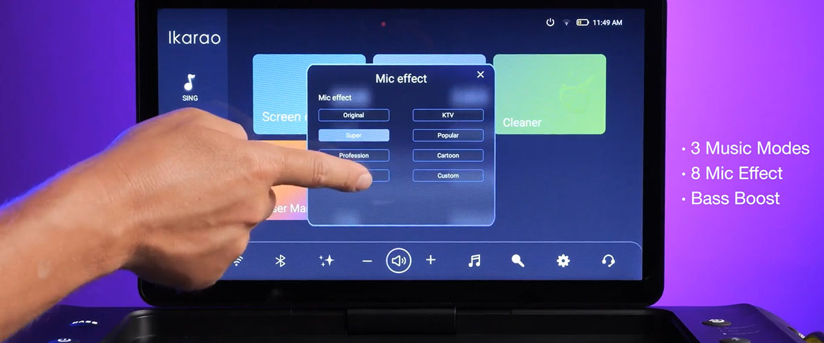 Spotify, YouTube, KaraFun gibi uygulamalar üzerinden HDMI, Bluetooth ve WiFi aracılığıyla televizyonunuza bağlanarak tam bir karaoke deneyimi yaşayın.