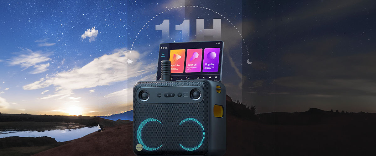 Ekran açıkken 8 saate, ekran kapalıyken ise 11 saate kadar oynatma süresi sunan Break X2 karaoke hoparlör, uzun süreli etkinlikler ve açık hava toplantıları için idealdir.