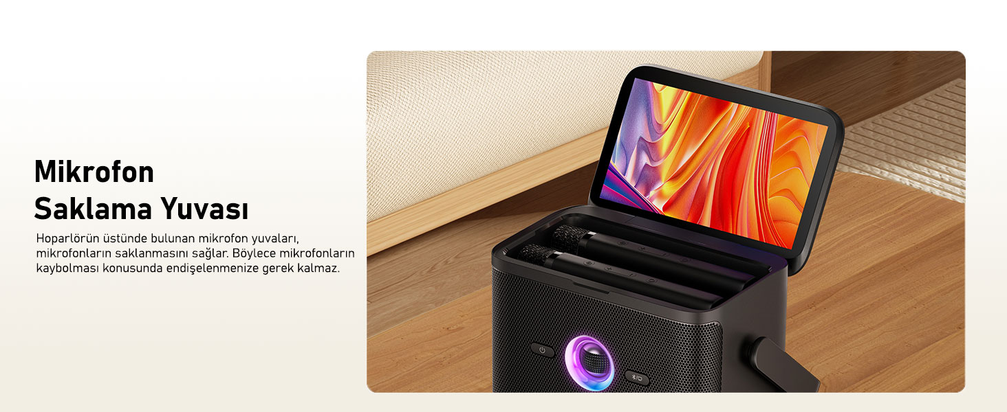 Ikarao Shell S3 Karaoke Hoparlör Seti ile istediğiniz her yerde eğlenceli karaoke partiler yapabilirsiniz. Hem yetişkinler hem de çocuklar için ideal olan Ikarao S3 karaoke hoparlörü, 7.1” dahili tablet ekranı sayesinde her koşulda eğlenceyi zirveye taşır. Hoparlörün dinamik söz senkronizasyon teknolojisi sayesinde şarkı sözleri neredeyse 0 gecikme ile otomatik olarak senkronize olur. Böylece hiçbir ritmi kaçırmazsınız. Ailece yapılan eğlenceli partiler için vazgeçilmez bir cihazdır.