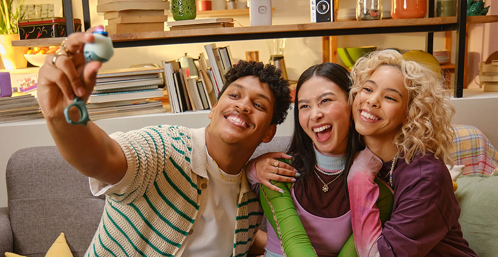 Instax Pal takılıp çıkarılabilir bir halkaya sahiptir. Bu aksesuarı, kamerayı parmağına takmak için kullanabileceğin gibi fotoğraflarının kadrajını ayarlamak için harici bir vizör gibi de kullanabilirsin. Zamanlayıcıyı kullanırken ya da uzak çekim yaparken de kameranı bir stand gibi halkanın üzerine koyabilirsin. İstersen bu mini kamerayı bir tripoda da bağlayabilirsin.